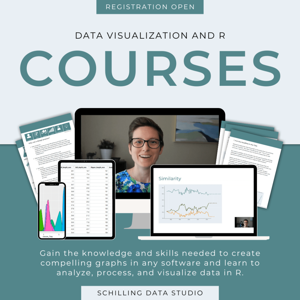 Kimly: In addition to your blog and the pearls of wisdom you share on Twitter and via the Data Visualisation Society (DVS), you also teach and coach others as part of Schilling Data Studio. You even have your own courses where you teach about R and the basics of data viz. What drew you to teaching? How did you first get involved?